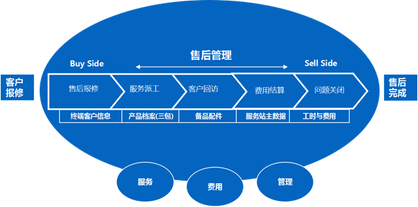 构建一整套包括售后客户报修、服务派工、客户回访、费用结算在内的售后服务机制,规范了售后服务管理体系,明确的总部与区域售后服务体系的服务事项。